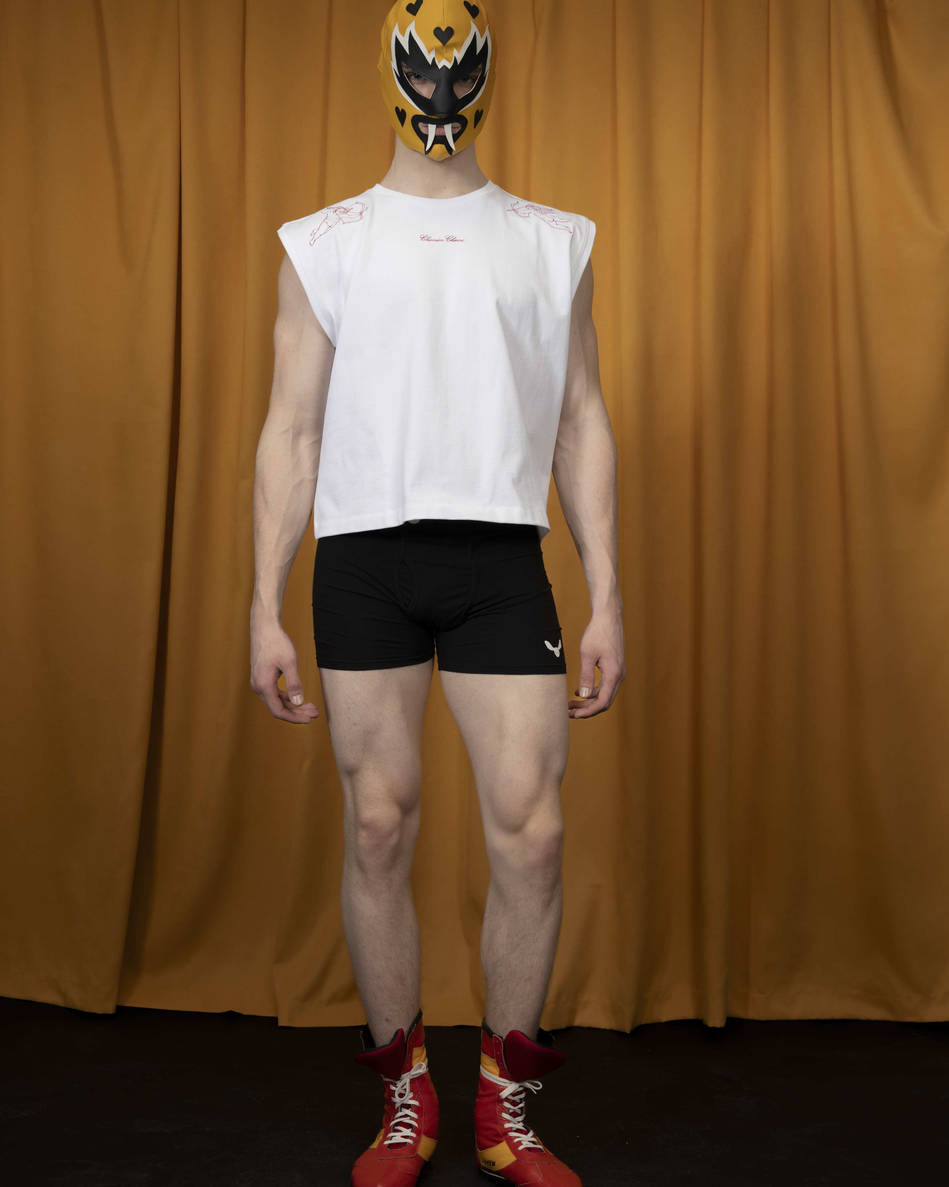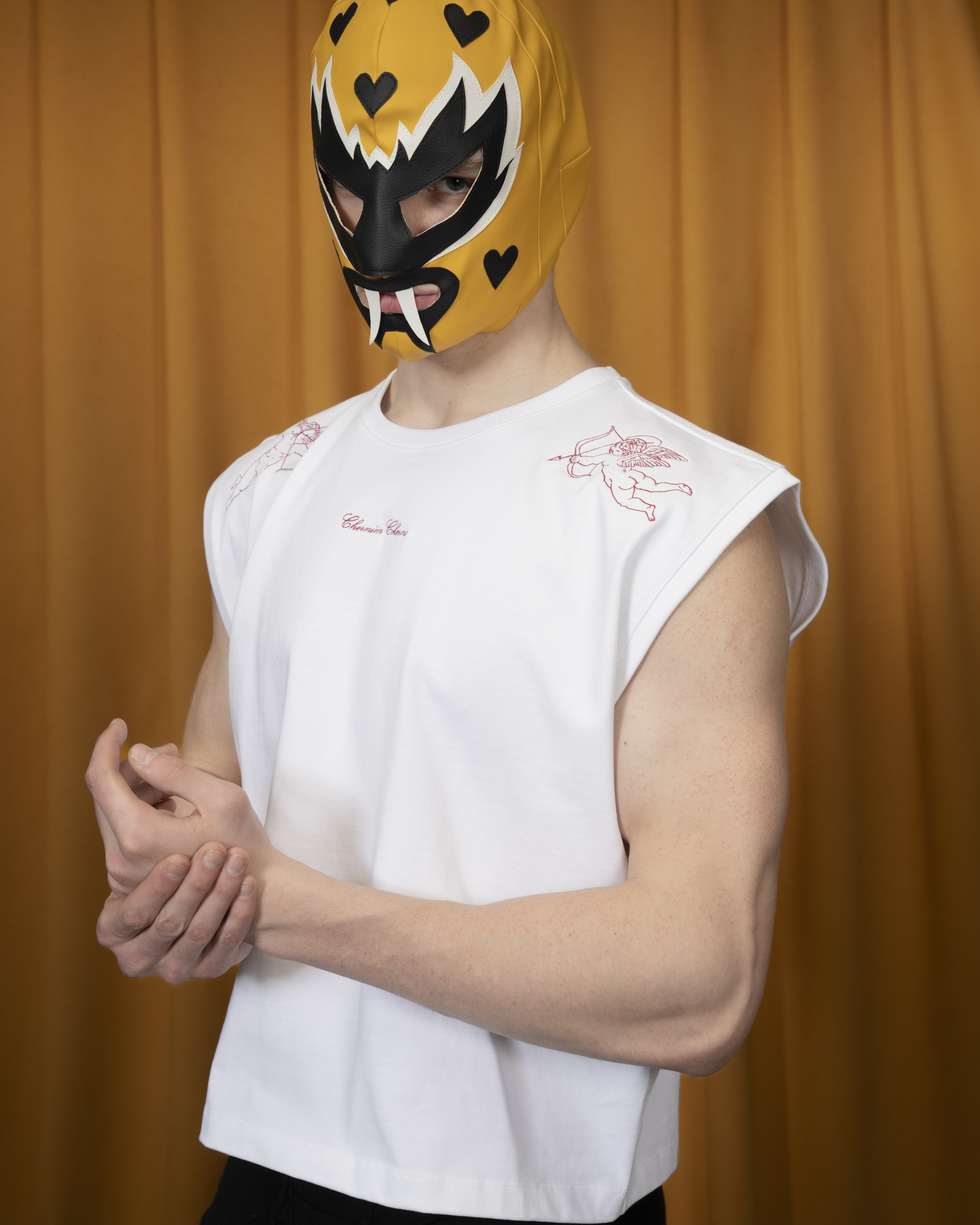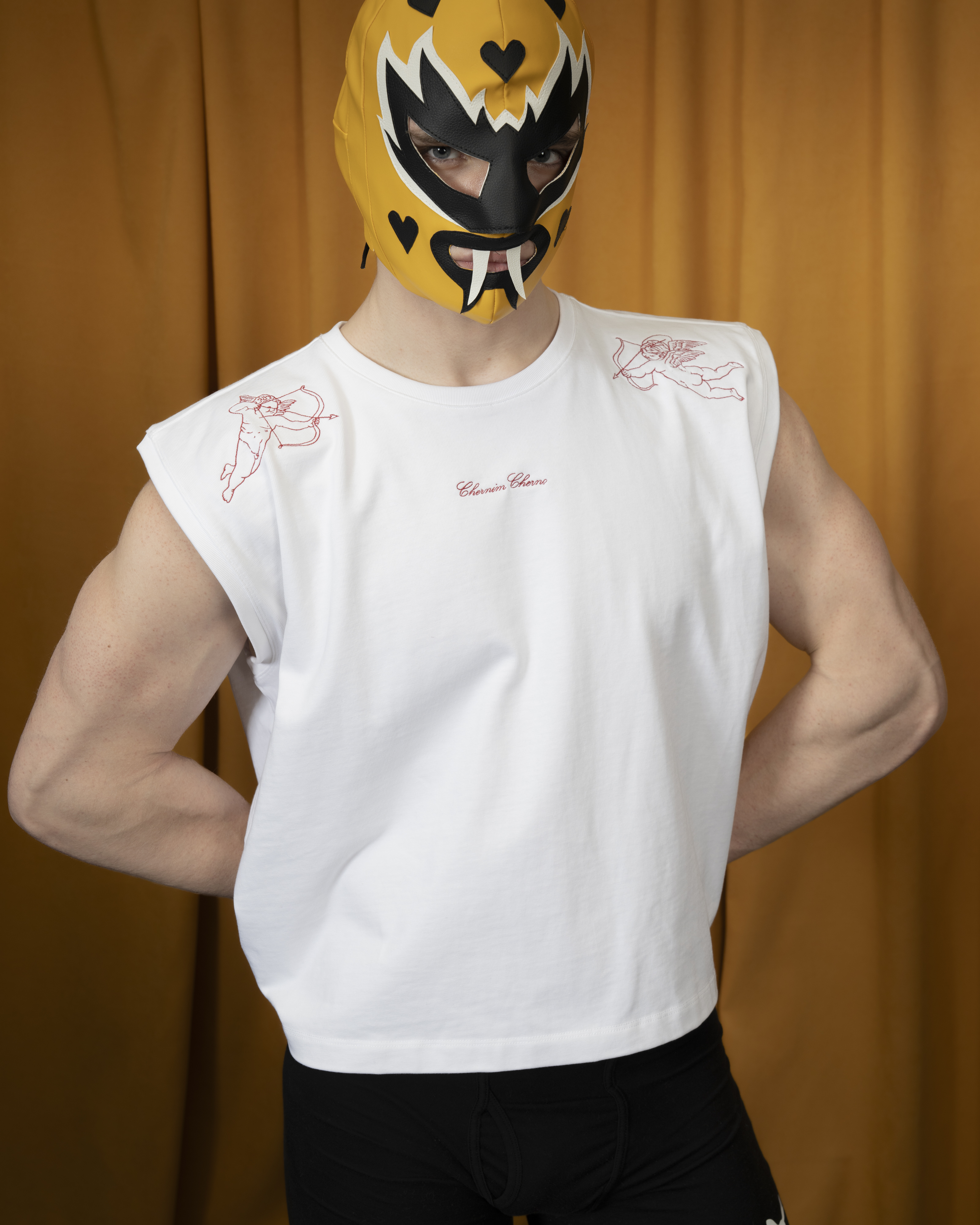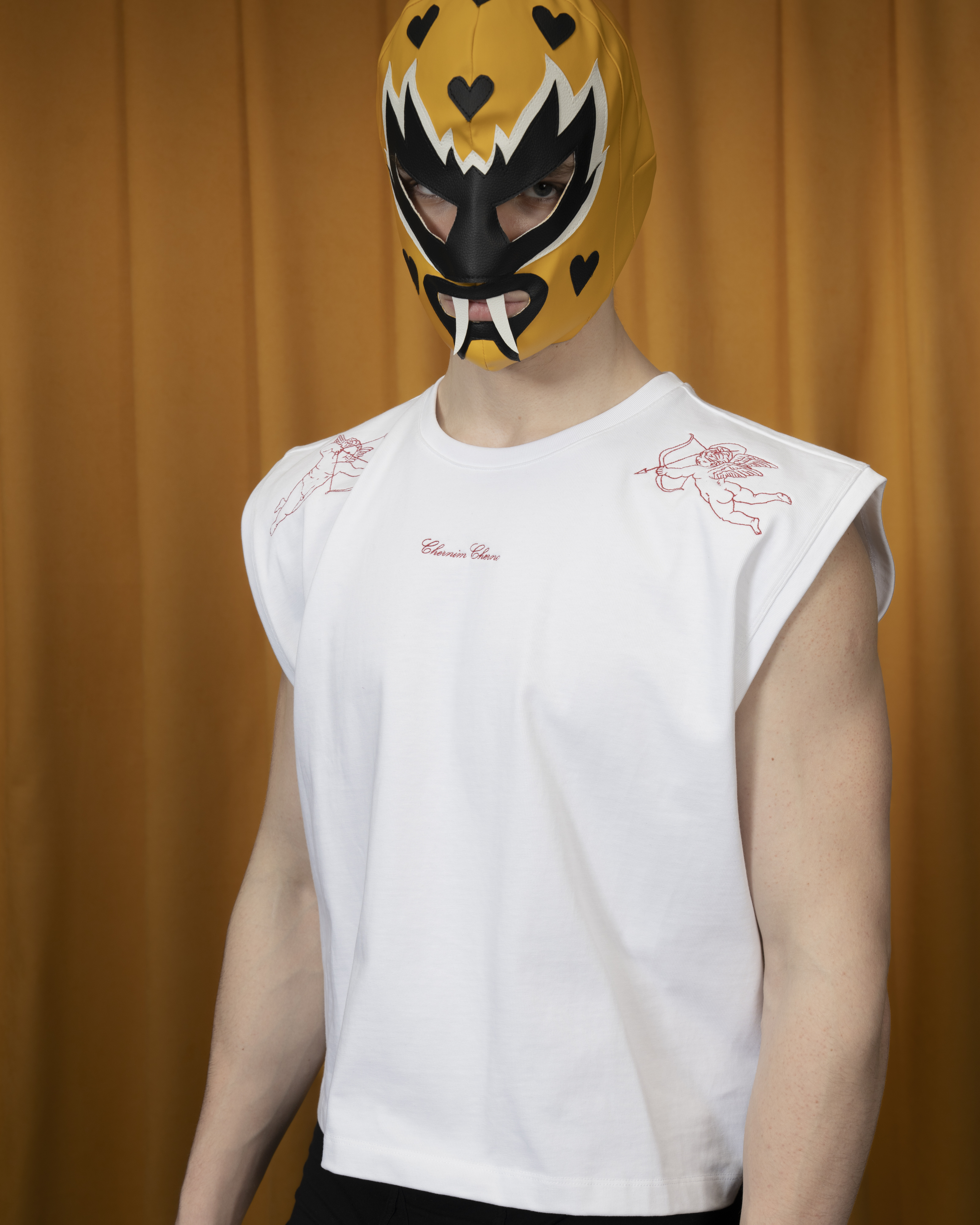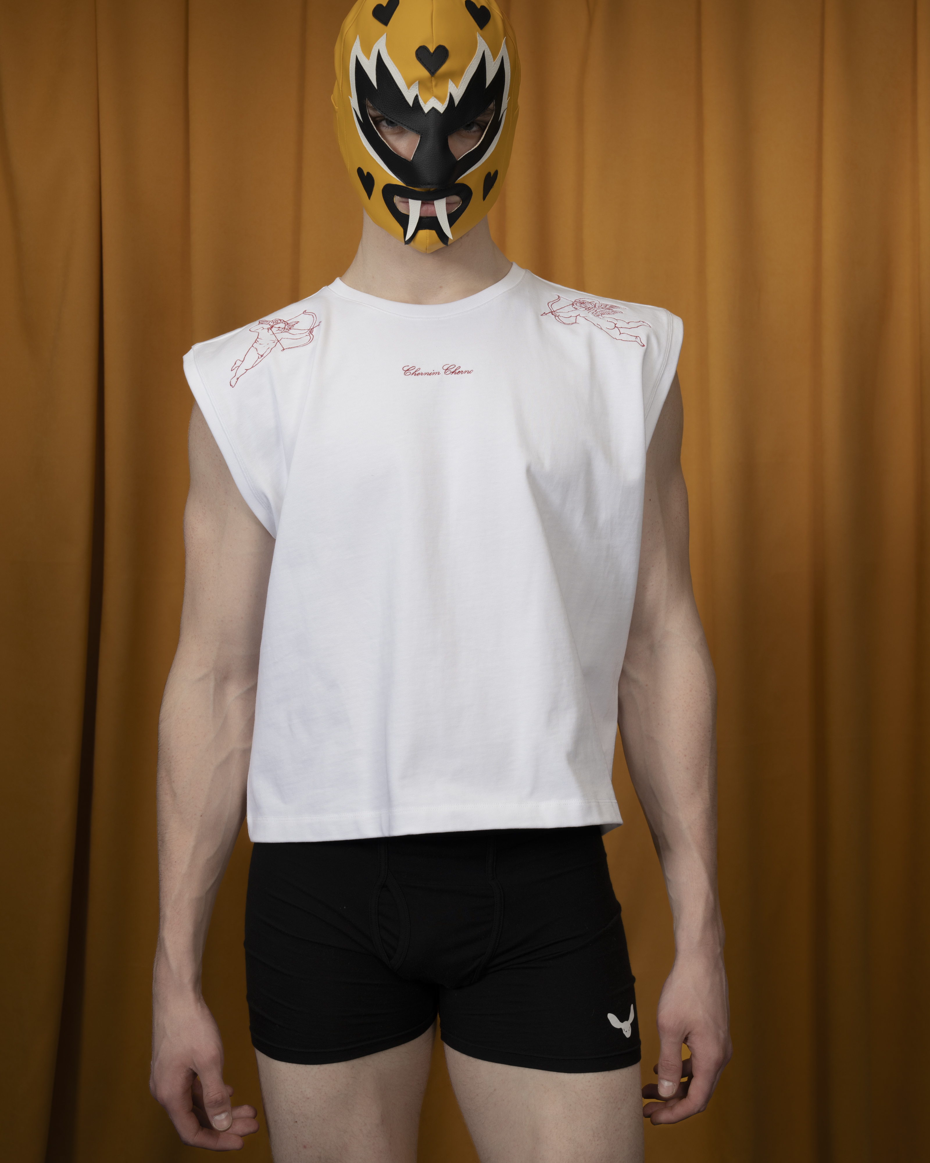 Футболка без рукавов из плотного хлопка с уплотнённой линией плеч, украшена деликатной вышивкой спереди.
