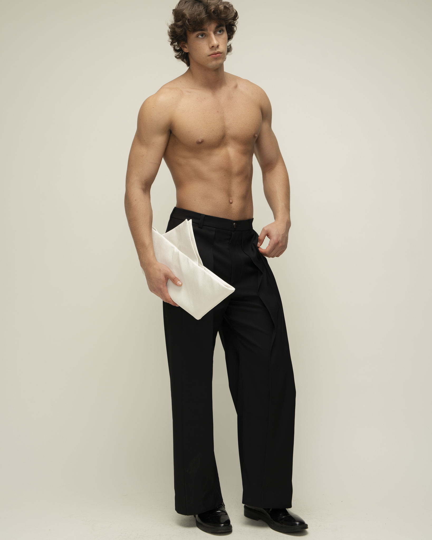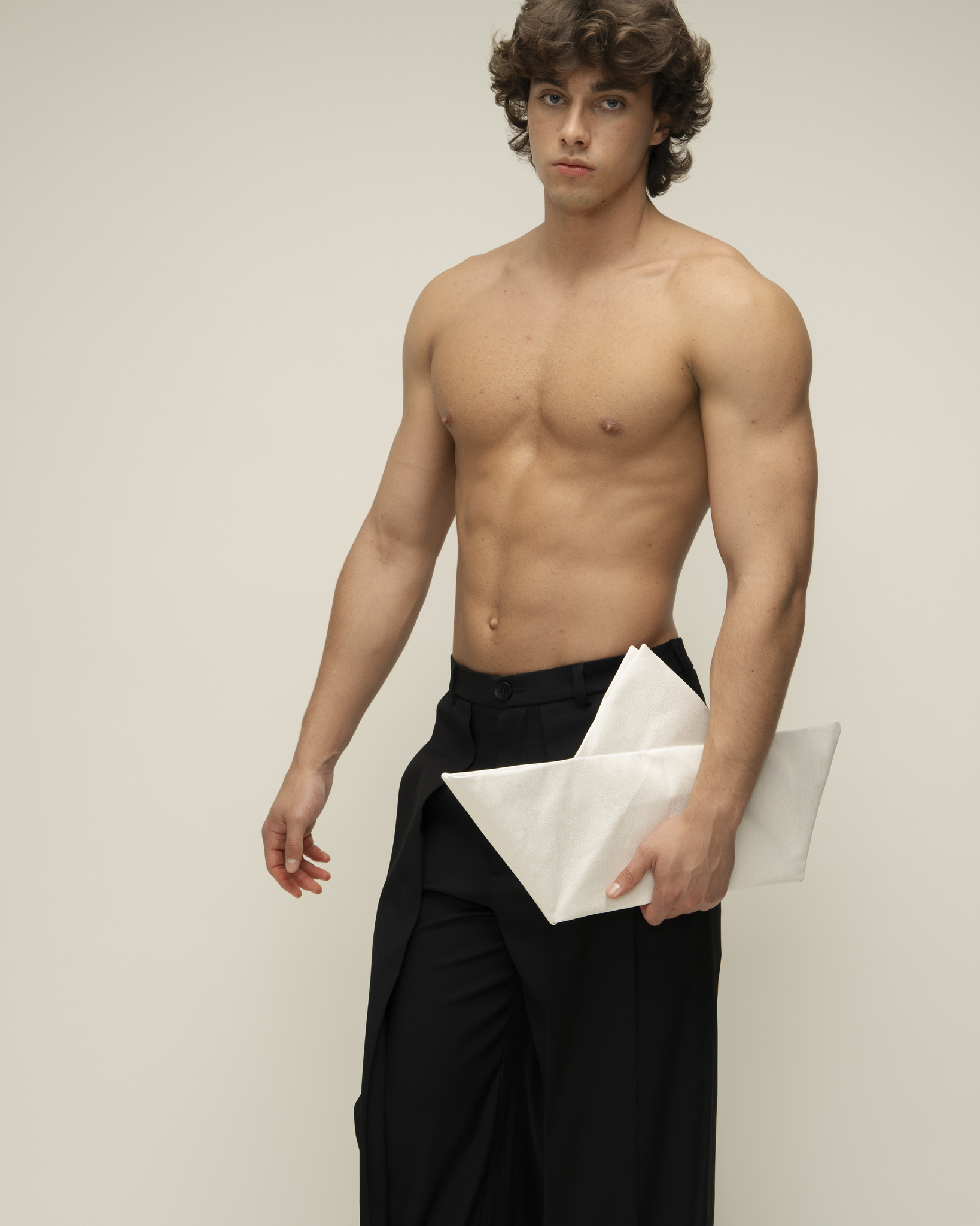 Клатч из экокожи в форме кораблика-оригами с застежкой на молнию и магнитную кнопку. Внутри брендированная подкладка с карманом на молнии.