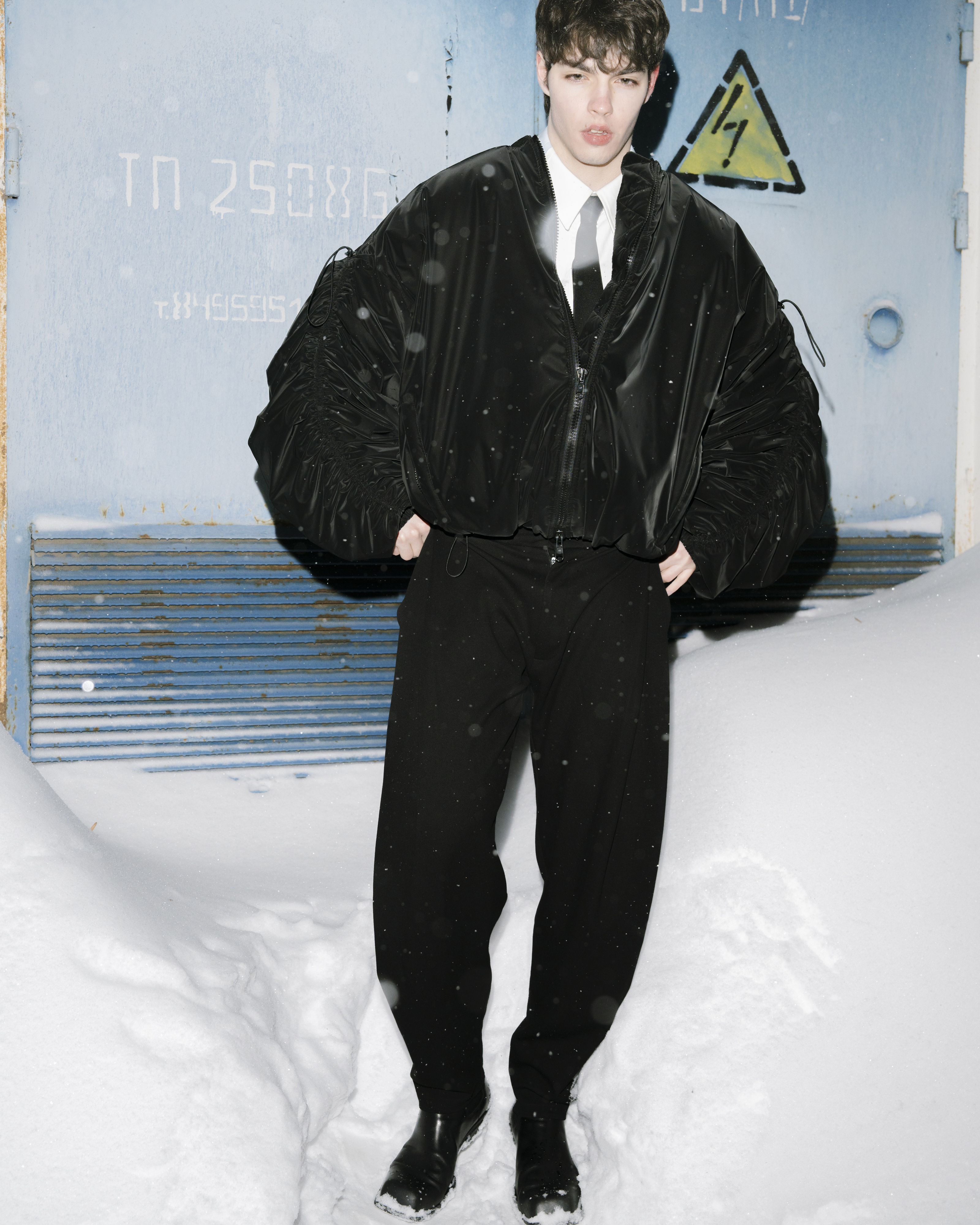 БОМБЕР ИЗ ПЛАЩЕВОЙ ТКАНИ С БАРХАТНЫМ ЭФФЕКТОМ НА РЕГУЛИРУЮЩЕЙСЯ РЕЗИНКЕ С МЕТАЛЛИЧЕСКИМИ ФИКСАТОРАМИ ПО РУКАВУ И НИЗУ ИЗДЕЛИЯ. УЗКИЕ МАНЖЕТЫ НА ПРОСТРОЧЕННОЙ РЕЗИНКЕ ДЛЯ ПЛОТНОЙ ФИКСАЦИИ НА РУКАВЕ. БОКОВЫЕ КАРМАНЫ НА МОЛНИЯХ, ВНУТРЕННИЙ НАКЛАДНОЙ КАРМАН.
