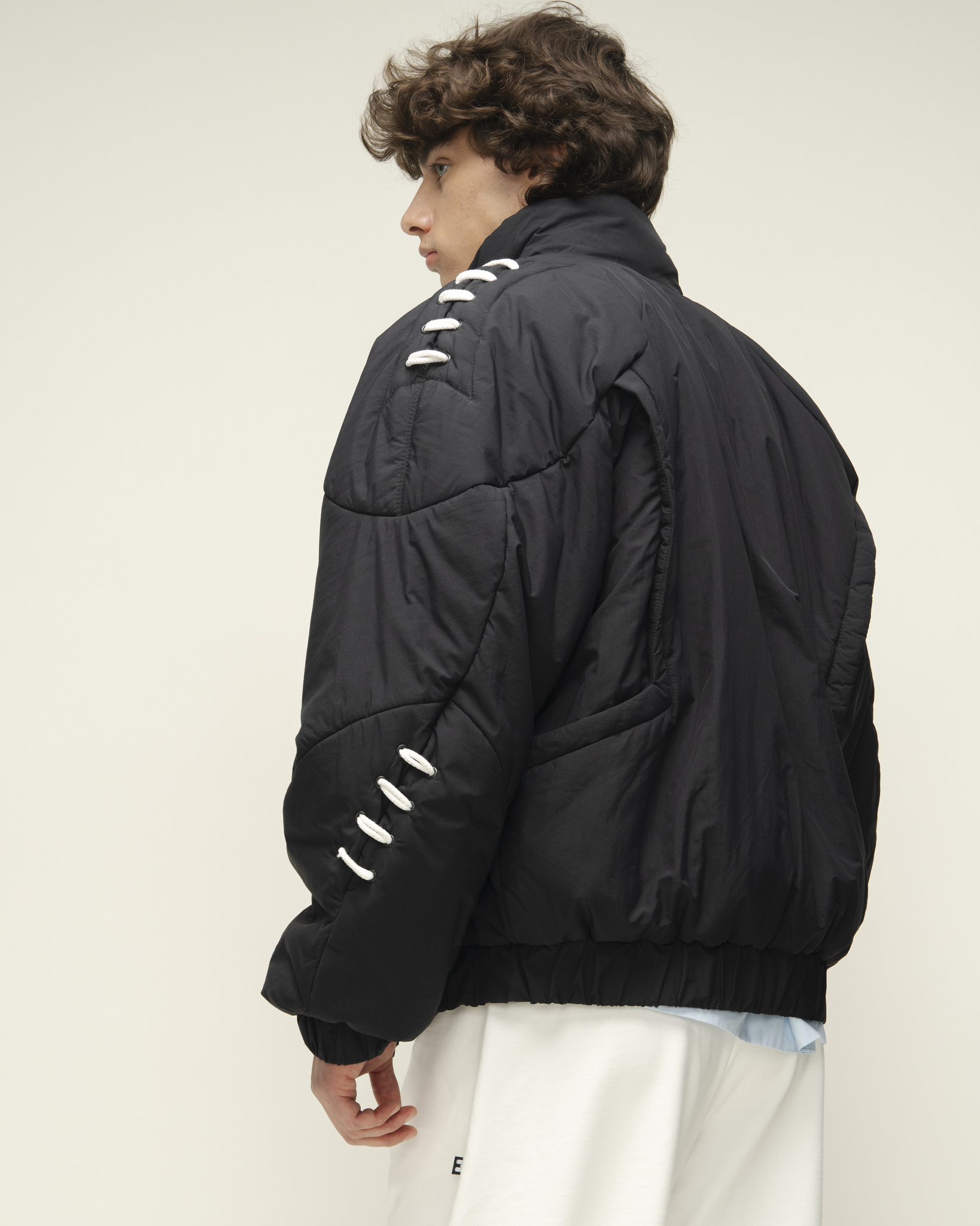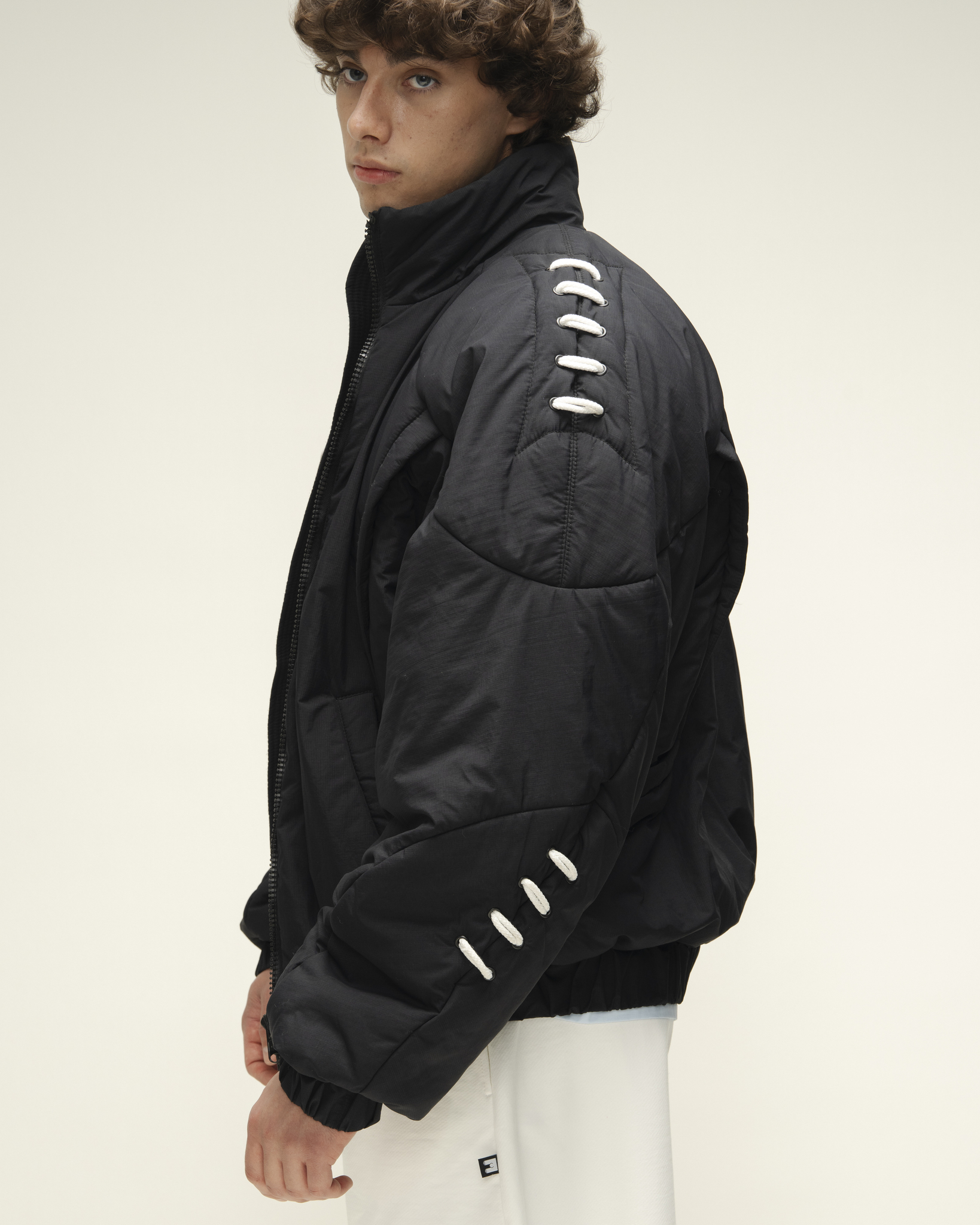 ДЕМИСЕЗОННАЯ НЕЙЛОНОВАЯ КУРТКА С ВОРОТНИКОМ-СТОЙКОЙ, СО СТИЛИЗАЦИЕЙ ФОРМЫ И ШНУРОВКИ МЯЧА «РЕГБИ» НА ПЛЕЧАХ И ЛОКТЯХ. ДВА ПЕРЕДНИХ ПРОРЕЗНЫХ КАРМАНА, ОДИН ВНУТРЕННИЙ. БРЕНДОВАЯ НАШИВКА. ДВУЗАМКОВАЯ ТРАКТОРНАЯ МОЛНИЯ. МАНЖЕТЫ И НИЗ НА РЕЗИНКЕ. ПОДКЛАДКА ПЕРЕДА И СПИНКИ - 100% ХЛОПКОВЫЙ ФУТЕР.