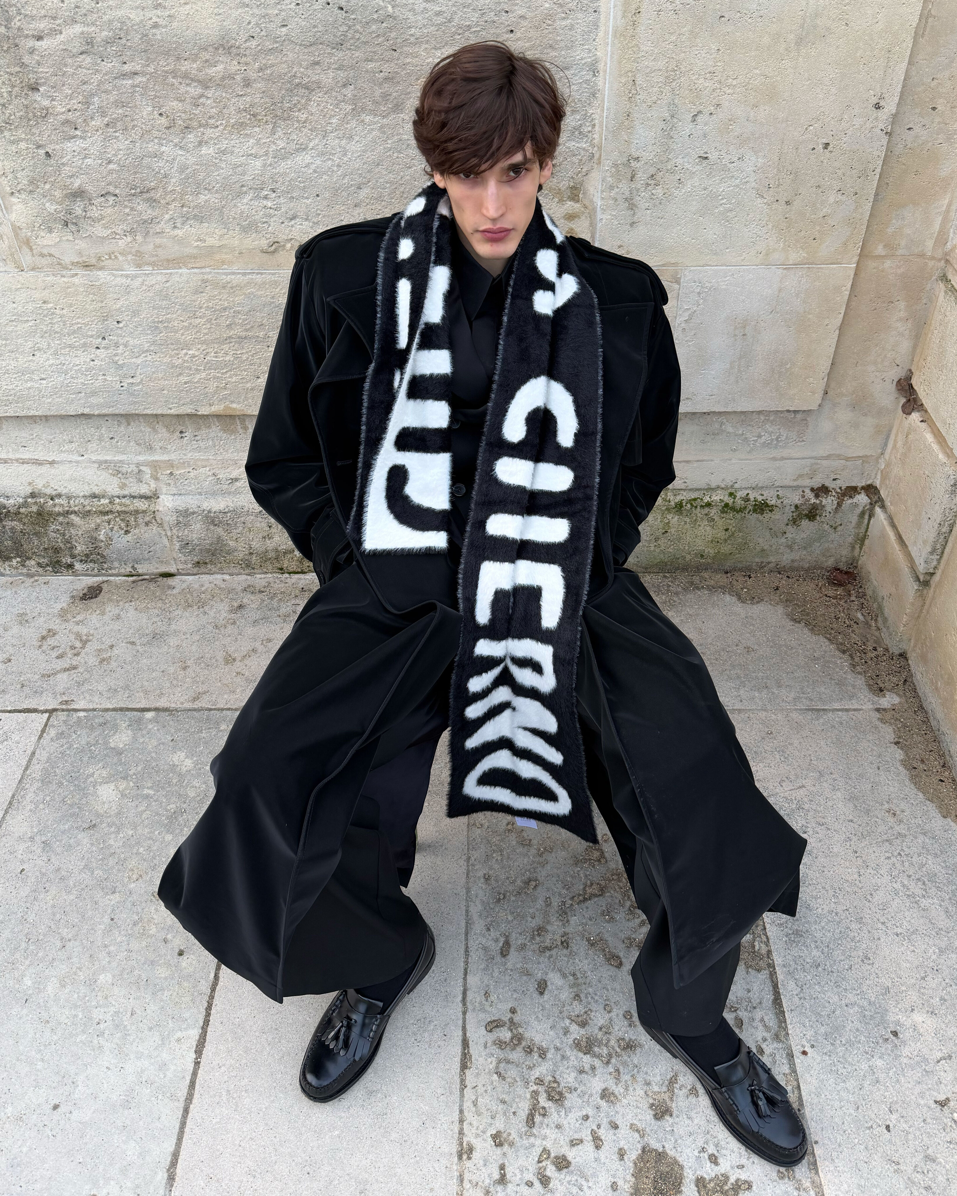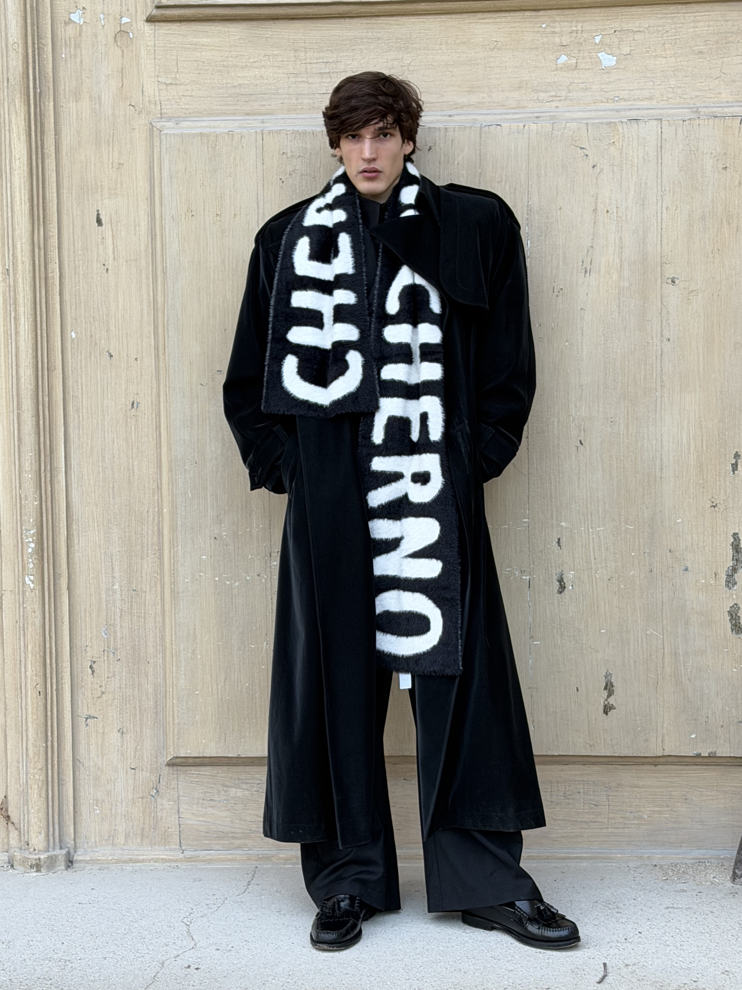 ПУШИСТЫЙ МАХРОВЫЙ ШАРФ С КРУПНОЙ НАДПИСЬЮ CHERNIM CHERNO. ДВУСТОРОННИЙ.
