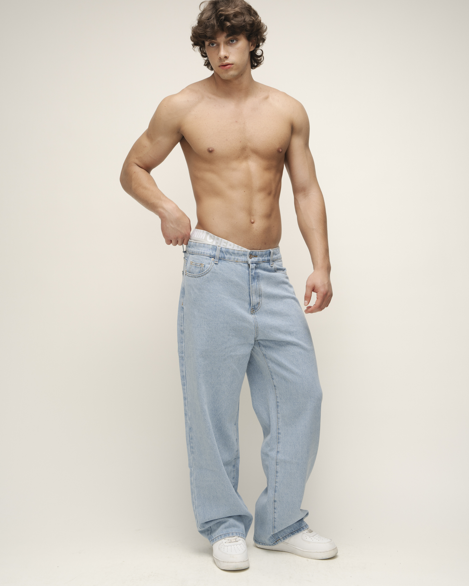 Плотные хлопковые джинсы из денима (475 г/м²) с фирменными усиленными кнопками на местах крепления карманов. Большой логотип на заднем кармане и кожаная брендированная шлёвка.
