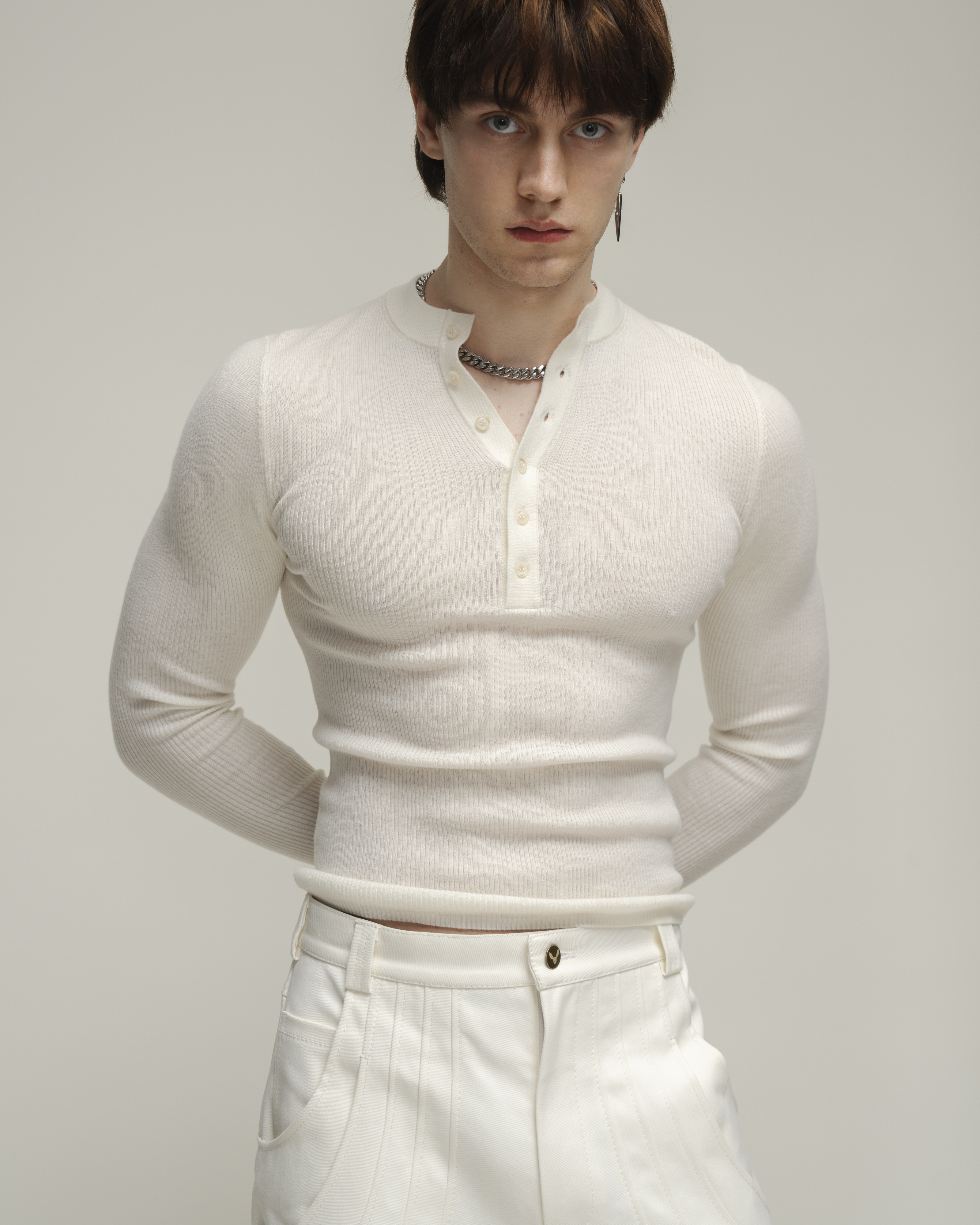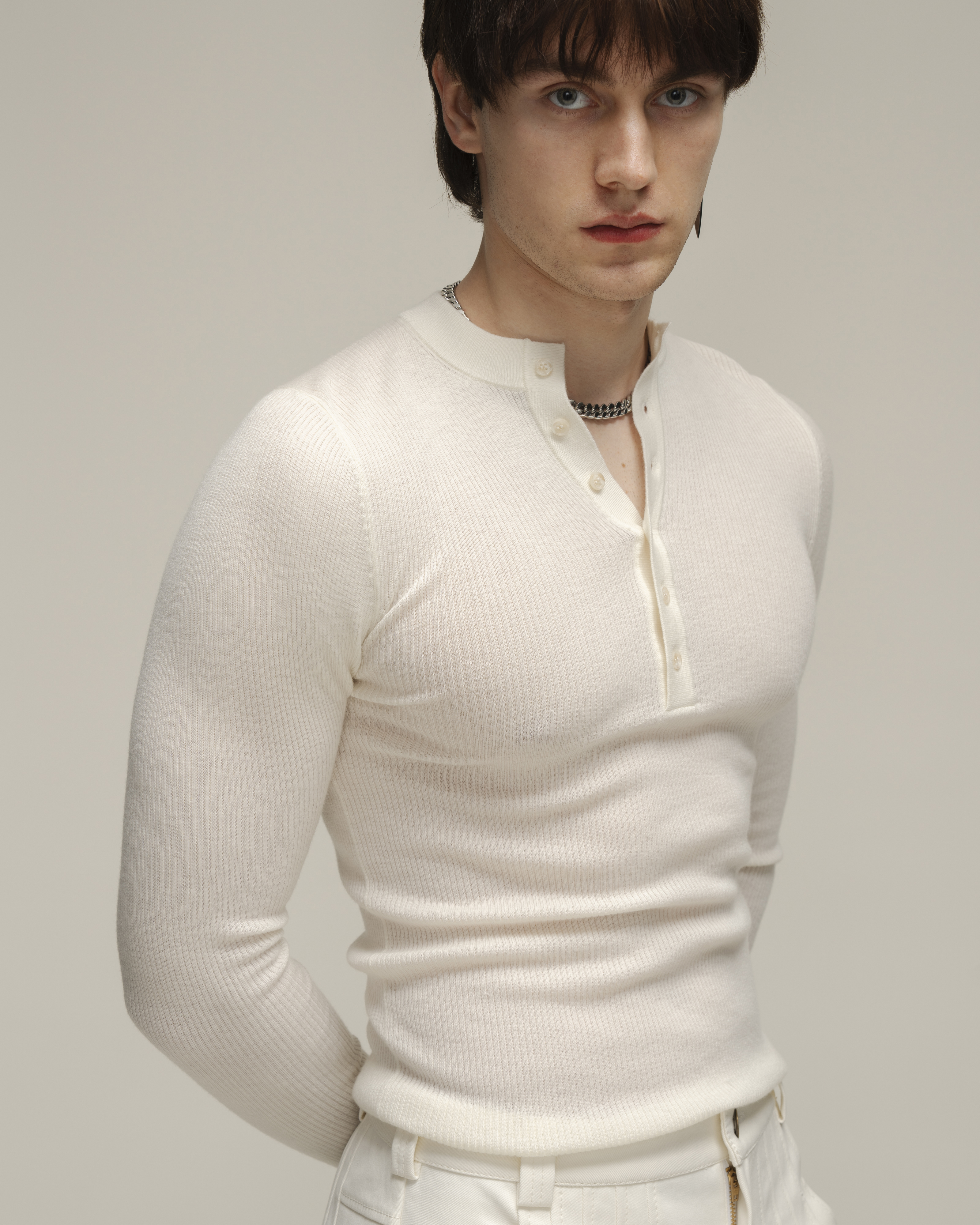 Лонгслив хенли приталенного кроя (Slim Fit), выполненный из мягкого трикотажа с выраженной текстурой. Планка на брендированных пуговицах для регулировки глубины декольте.