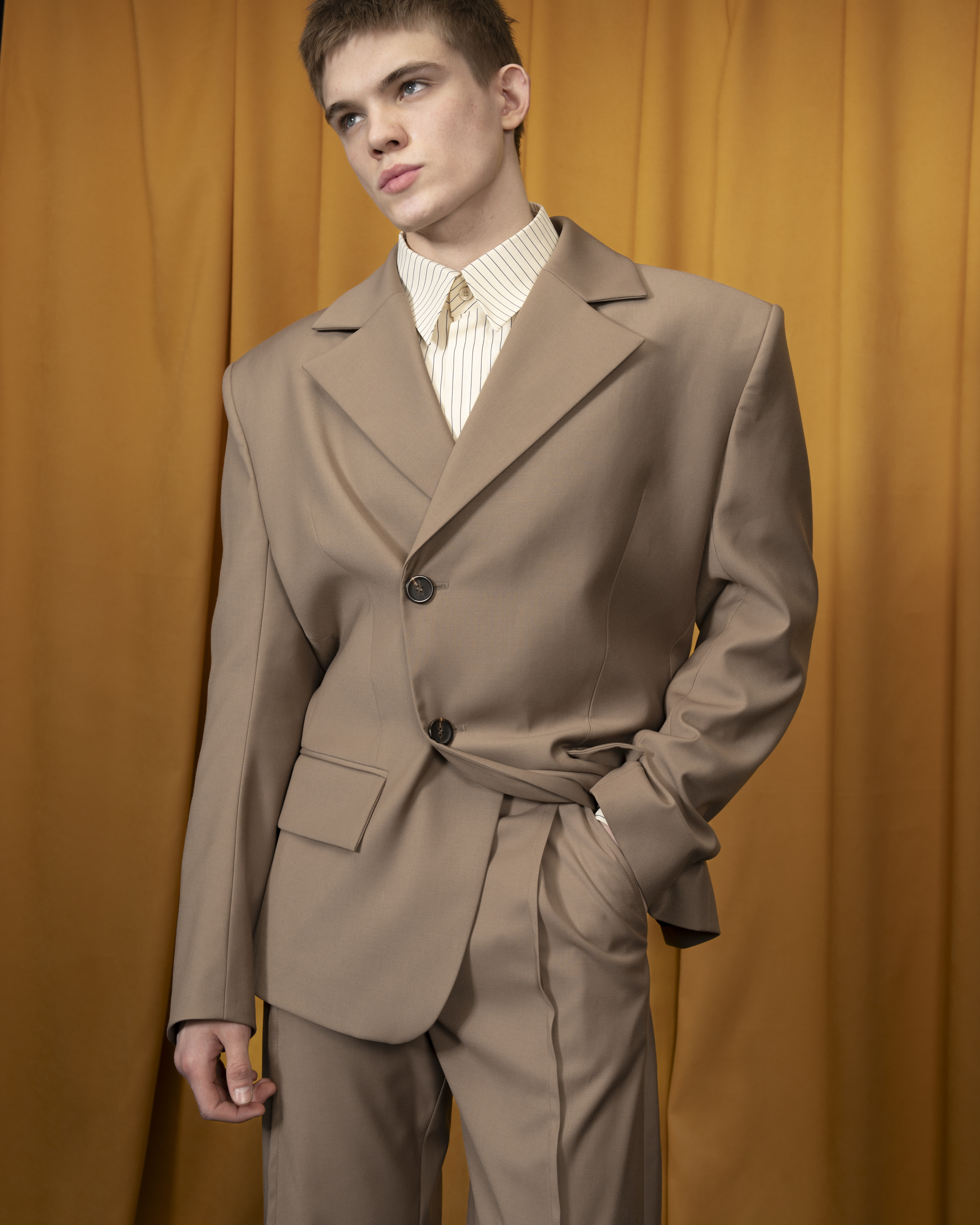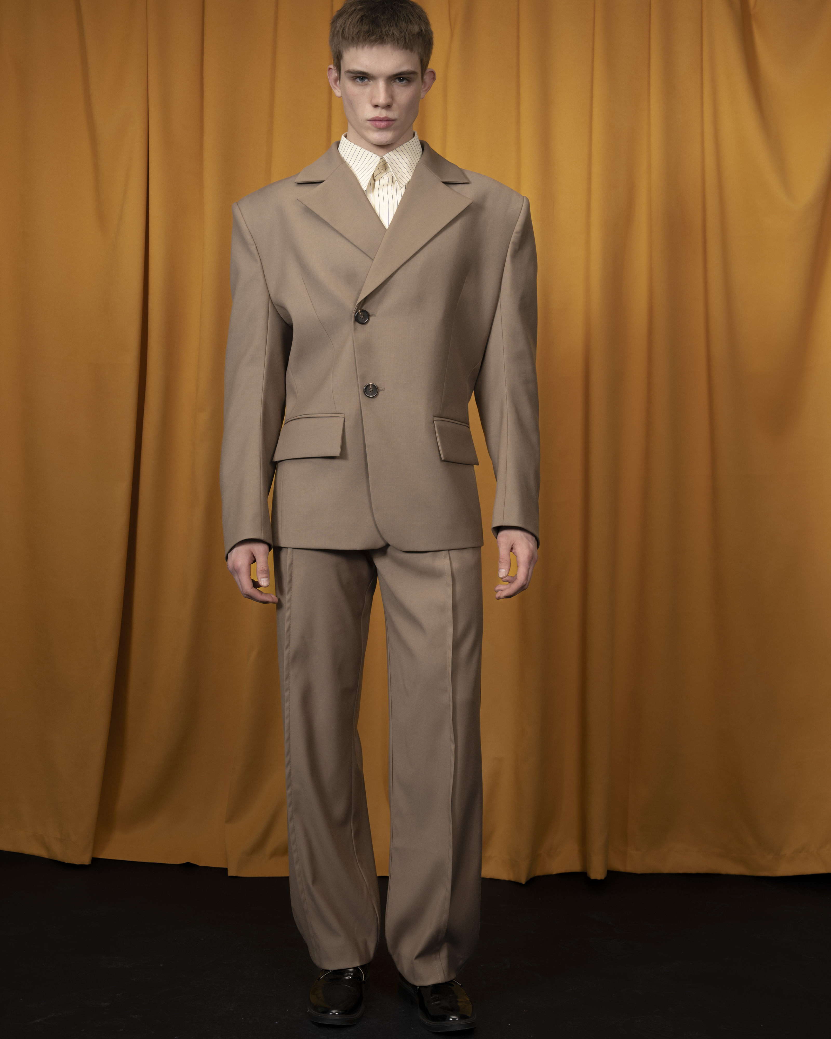Брюки из смесовой ткани с застроченными стрелками. Два боковых кармана и один задний. Размер S подходит для стандартного размера S, размер М подходит для стандартного размера М, размер L подходит для стандартного размера L. Брюки представлены в двух длинах.