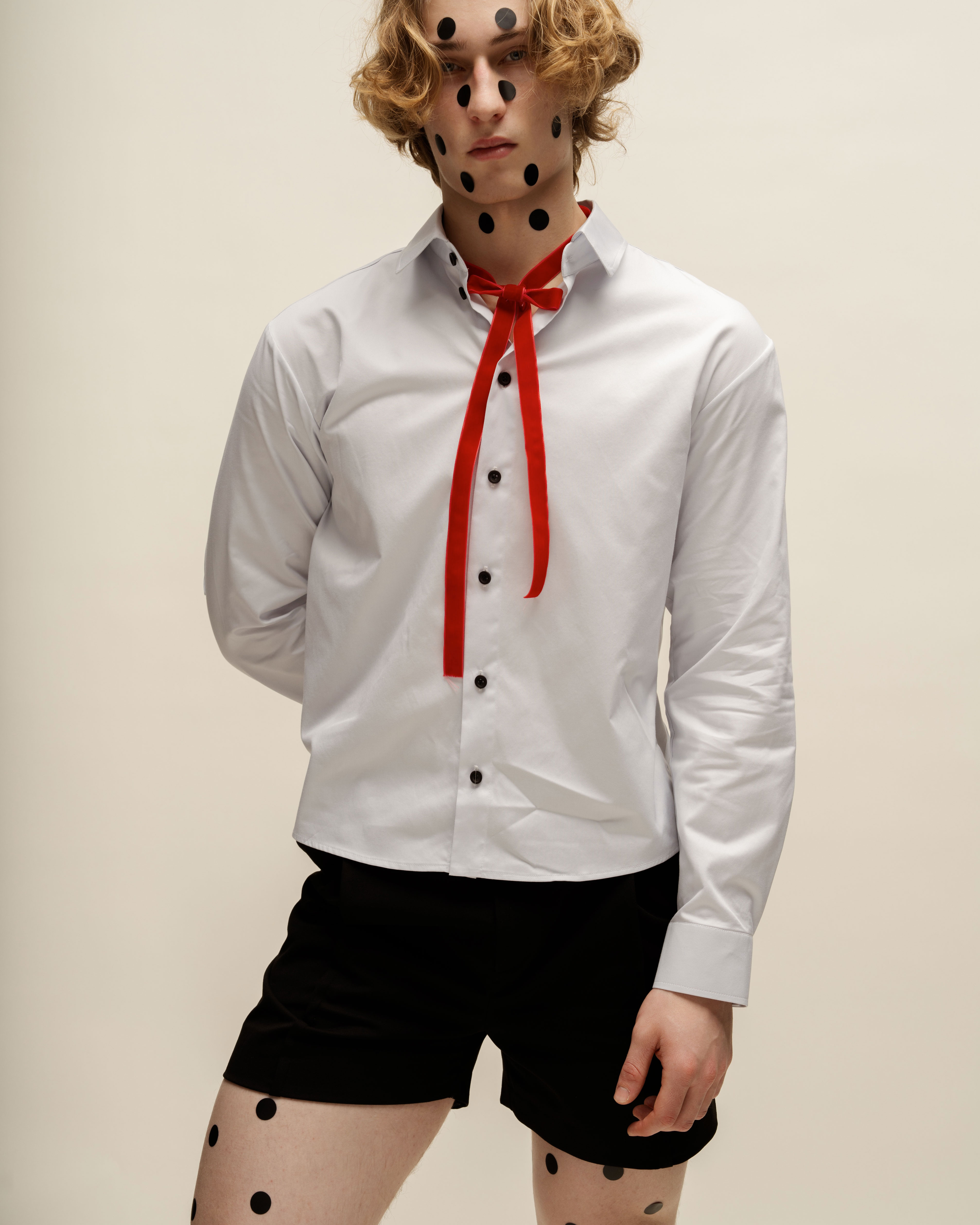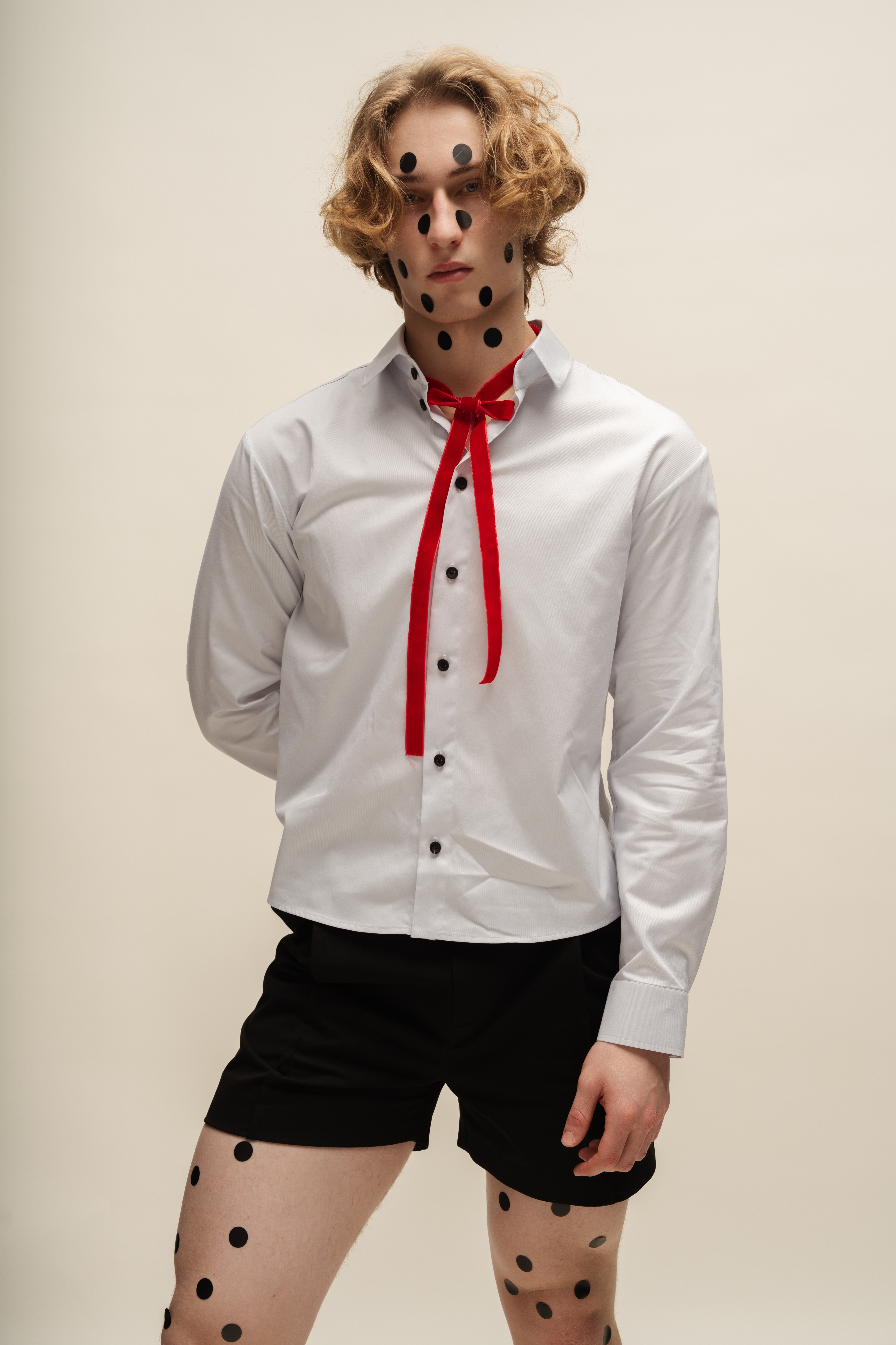 Рубашка из хлопковой мягкой ткани с сатиновым эффектом. Планки рукавов в форме «сердца» и «стрелы». Плотный воротник и манжеты. Застёжка на петли и брендированные пуговицы.